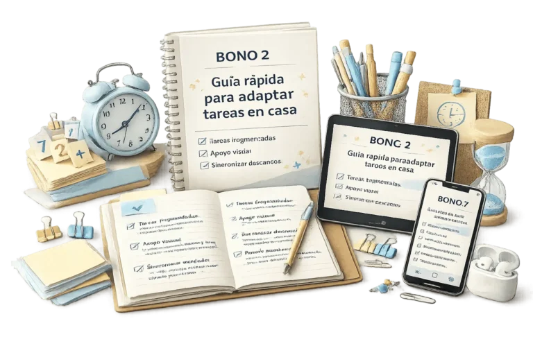 ✅ Propuestas de adaptaciones sencillas en casa y en la escuela: cómo presentar contenidos, cómo ajustar tareas, cómo evaluar sin castigar la dificultad neurológica.